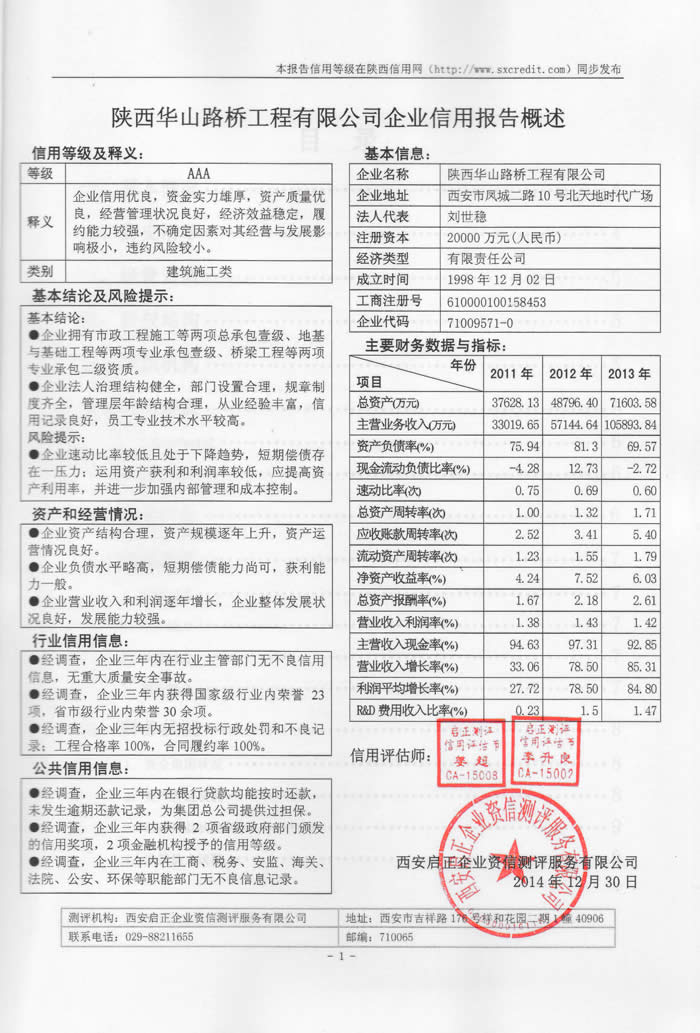 陜西華山路橋工程有限公司    3星級(jí)