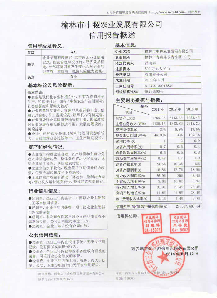 榆林市中稷農(nóng)業(yè)發(fā)展有限公司