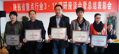 2013年3月15日,陜西省重點(diǎn)行業(yè)3·15專題調(diào)研座談會暨總結(jié)表彰會在西安召開。會議發(fā)布了2012-2013年度陜西省重點(diǎn)行業(yè)3·15專題調(diào)研報告,并授予36戶企業(yè)“3·15信用品牌”稱號。