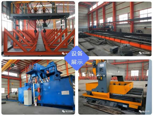 設備配置主要有:大型橋門式起重機(河南礦山)、GS/Z-11-5000D數控直條等離子切割機(無錫華聯)、QC11K-25數控液壓閘式剪板機(寶雞金牛)、 PLD2016C型龍門移動式數控平面鉆床(山東法因)、MHJ-5000B門式埋弧焊接機(無錫華聯)、YJ-60BH型鋼翼緣液壓矯正機(無錫華聯)、Q1825-10H鋼構拋丸機(江蘇龍發)等,各類焊接設備30余臺,能滿足各種大型焊接H型鋼、箱體、十字型等重型鋼結構的生產加工。