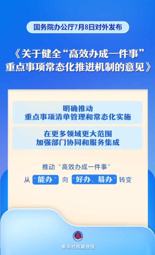 近日,國務院辦公廳印發《關于健全“高效辦成一件事”重點事項常態化推進機制的意見》,公布《“高效辦成一件事”2025年度第二批重點事項清單》。 1、《關于健全“高效辦成一件事”重點事項常態化推進機制的意見》