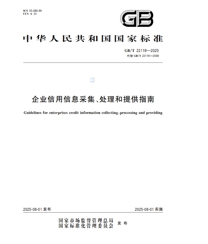近日,市場監管總局修訂發布《企業信用數據項要求》(GB/T 22120—2025)、《企業信用檔案信息要求》(GB/T 31952—2025)、《企業信用信息采集、處理和提供指南》(GB/T 22118—2025)三項國家標準,為企業信用信息歸集、信息處理、信息共享及信用檔案建設提供系統指引。
