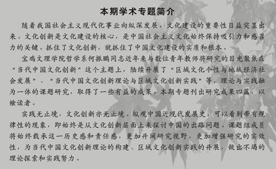 學術專題 本期學術專題簡介 當代中國文化創新研究五問……………………………………………………… 何振鵬 科學文化觀與當代中國文化創新芻議…………………………………………… 趙 艷 略論文化交流與文化創新………………………………………………………… 蘭天祥 文化創新視野中的英語教學……………………………………………………… 曹武軍