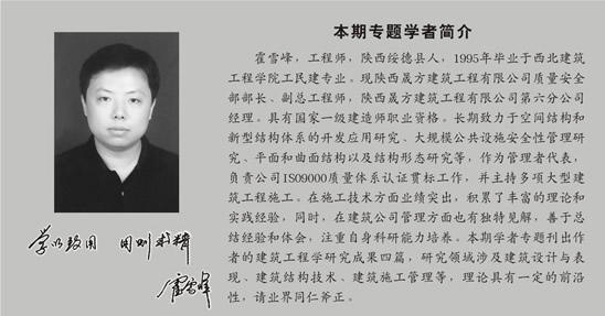 學者專題 本期專題學者簡介 現代鋼結構建筑設計與表現研究………………………………………………… 霍雪峰 高層建筑結構技術的發展趨勢分析……………………………………………… 霍雪峰 信息化施工管理的發展與展望…………………………………………………… 霍雪峰 淺談住宅工程的施工管理………………………………………………………… 霍雪峰